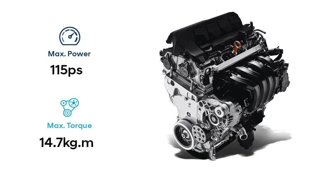 Công suất cực đại đạt 115ps tại 6,300 vòng/phút Momen xoắn cực đại đat 144Nm tại 4,500 vòng/phút.