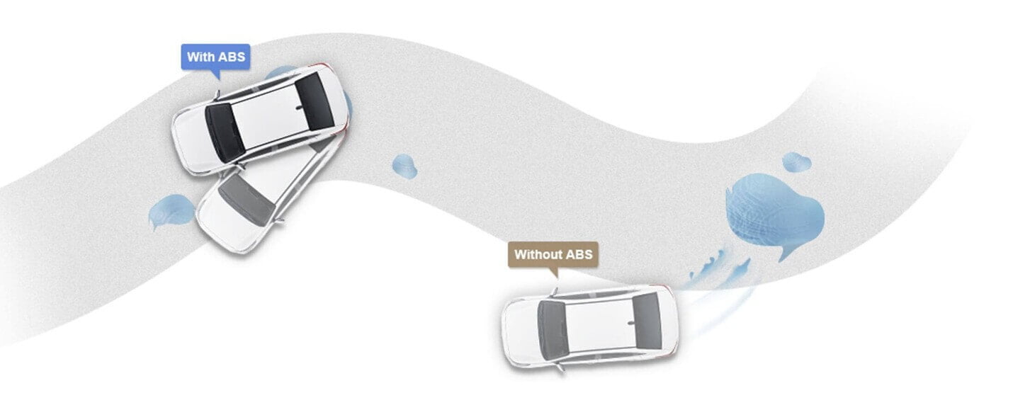 Hệ thống chống bó cứng phanh ABS bao gồm các cảm biến điều tiết lực phanh của bạn tác động lên đĩa phanh, giúp giảm tốc nhanh chóng nhưng vẫn đảm bảo hướng đánh lái của vô lăng giúp xe đi đúng hướng tránh va chạm.